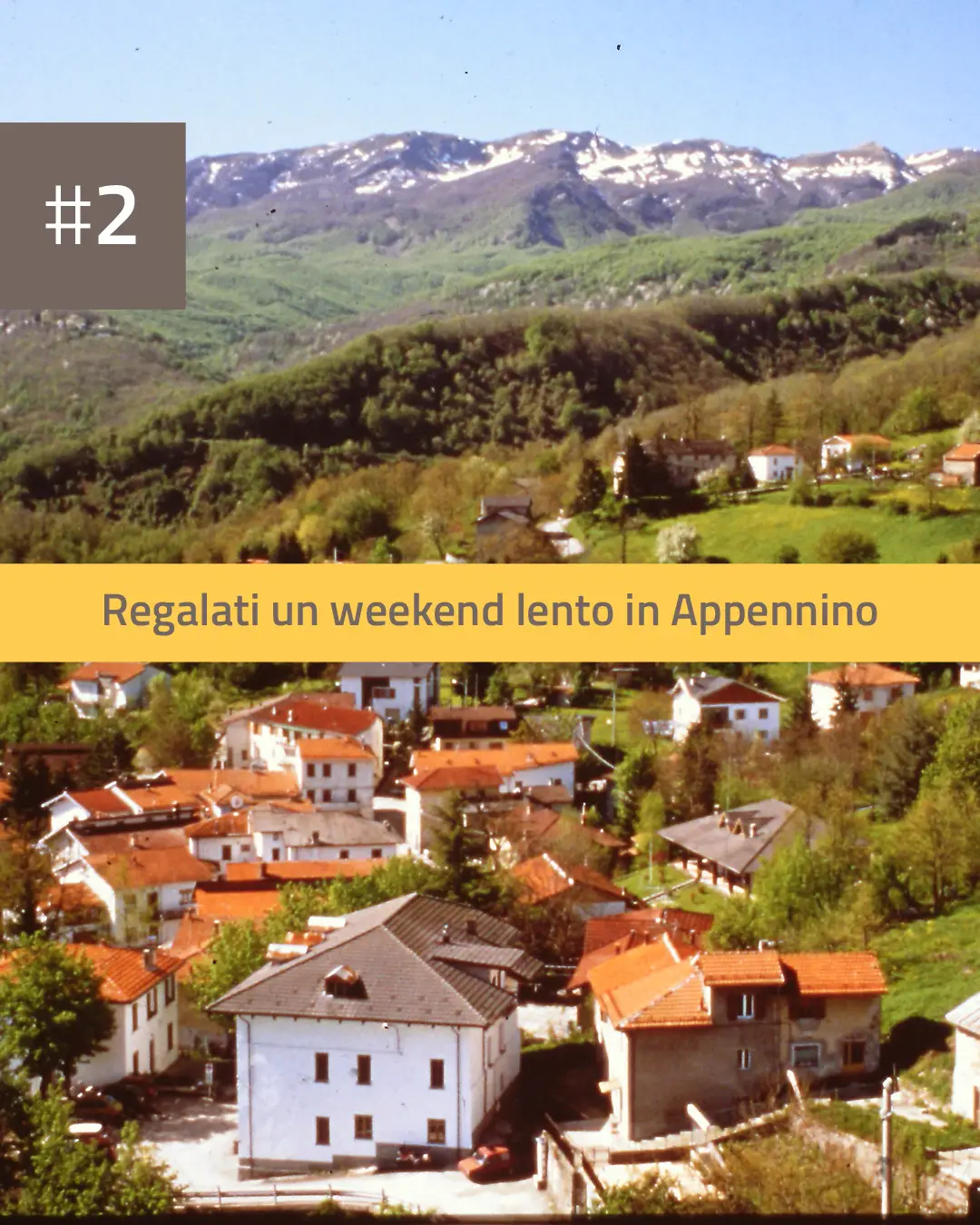 Scegli una struttura tra borghi e natura e concediti due giorni di pace, tra panorami aperti e il ritmo tranquillo della montagna: Ostello Cascina Cavalli, Le Camere della Piazza, Albergo Ristorante da Rita, Camping Alta Val d’Enza, Relax & Sport nel Parco dei Centolaghi, Casa Dani, Locanda Centolaghi.