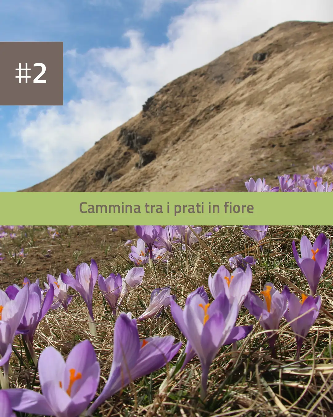 Segui i sentieri che si colorano di primavera e osserva il paesaggio che cambia settimana dopo settimana, tra ruscelli vivi e panorami aperti.